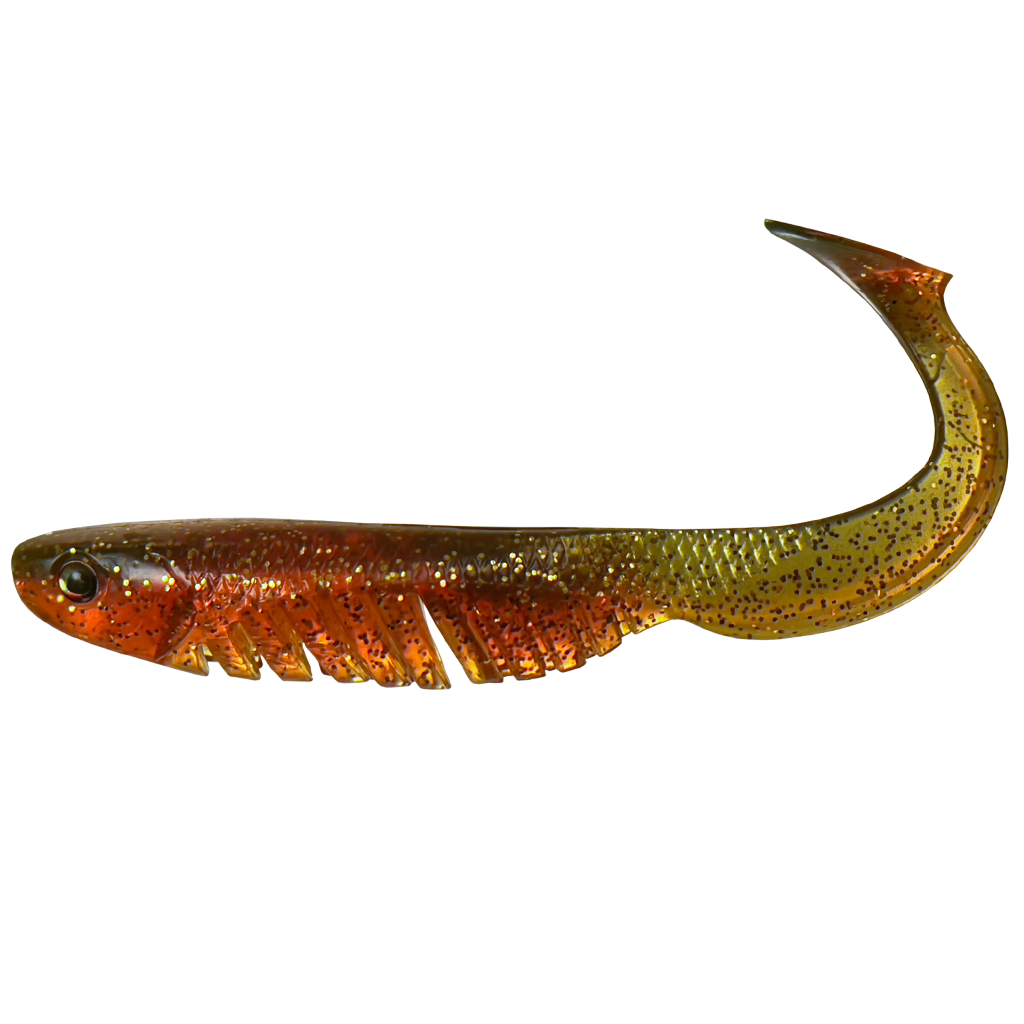 The BangerRibs features realistic eyes and has the perfect combination of curly tail and paddle tail. It can be fished like a swimbait imitating bait fish, but also like a worm/grub, and is therefore suitable to fish around the bottom and all throughout the water column. The floating TPE plastics also makes the tail rise when paused, which makes it look like it’s eating on the bottom. It is specifically designed to be used with the RockerHead, which produces the best swimming action, but it can also be used with standard jigheads,